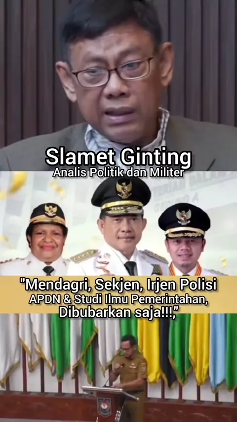"Kemudian Kementerian Dalam Negeri sekarang, Mendagri, Sekjen, Irjen itu Polisi, Wamen juga keluarga Polisi, Klo demikian STPDN dan Studi ilmu Pemerintahan dibubarkan saja, karena semua Jabatan itu diisi oleh Ilmu Akademi Kepolisian," Kata Analis Politik dan Militer, Slamet Ginting.