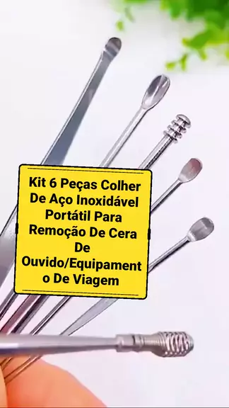 Kit 6 Peças Colher De Aço Inoxidável Portátil Para Remoção De Cera De Ouvido/Equipamento De Viagem #Shop #shopeeshow