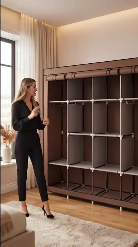 Grande Arara Guarda Roupa Dobrável Com Capa Tecido 4 Divisorias Roupeiro Organizador Roupas Armário #achadinhokwaishop