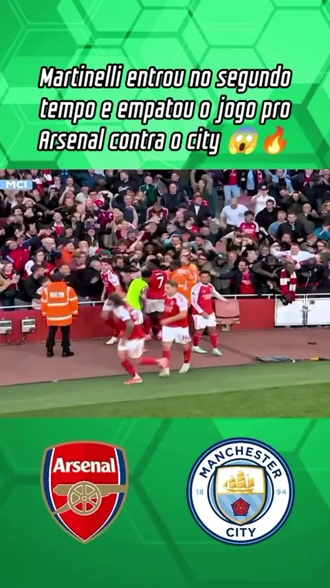Martinelli entrou no segundo tempo e empatou o jogo pro Arsenal contra o city #PremierLeague #manchestercity #ARSENAL #esporteviral