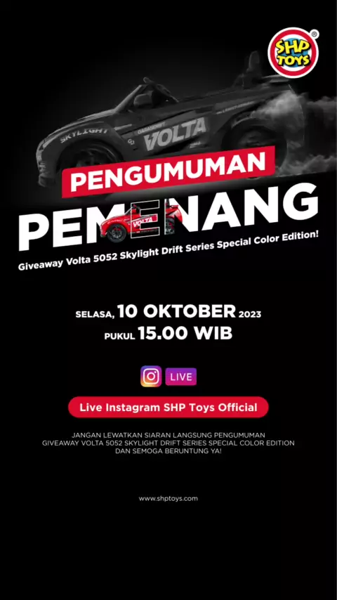 Jangan sampe ketinggalan buat tau siapa pemenang Give Away Volta Skylight Special Colour!! #dimulaisejakdini #readyforthenextlevel #firstdriftkidsIndonesia #SHPToysDrift #BanggaBuatanIndonesia #driftkidlocalpride #F2DK #Fun2DriftKids #IMX2023 #giveawaytime