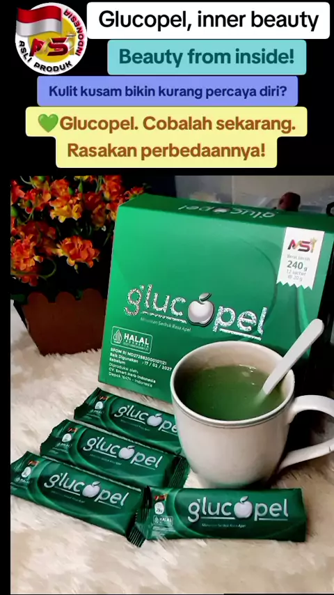 Glucopel, inner beauty. Beauty from inside! Kulit kusam bikin kurang percaya diri? 💚Glucopel, yang mengandung Collagen dan Glutathione, adalah minuman serbuk rasa apel. Glucopel, sebagai antioksidan alami, membantu agar kulit tetap lembut, glowing, dan tubuh fit setiap hari. Praktis dan aman. Cobalah sekarang. Rasakan perbedaannya! #glucopel #innerbeauty #beautyfrominside #praktis #aman