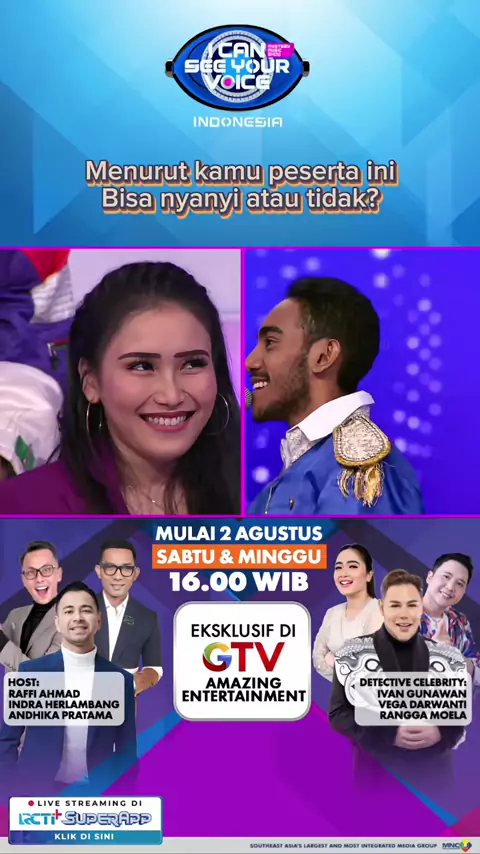 Bikin melting Ayu Ting-Ting, cari tau jawaban dari suara peserta satu ini dengan nonton keseruan Music Variety Show Bertabur Bintang 🤩🎼🎤 I Can See Your Voice Indonesia Mulai 2 Agustus Sabtu & Minggu Pkl 16.00 WIB Hanya di GTV #icanseeyourvoicegtv #icanseeyourvoiceindonesia #gtv #ayutingting