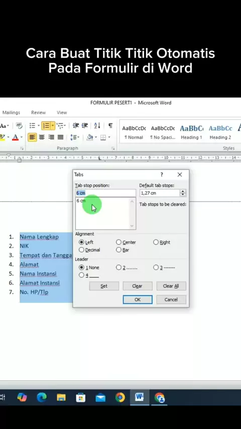 Cara Buat Titik Titik Otomatis Formulir di Microsoft Word#belajarmsword#belajarword#belajarlaptop