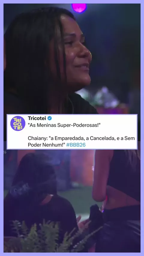 Uma fala de Chaiany arrancou risadas ao fazer uma brincadeira com o clássico “As Meninas Super-Poderosas”. A sister ironizou a situação do jogo ao definir o trio como “a Emparedada, a Cancelada e a Sem Poder Nenhum”, em referência ao momento vivido pelas participantes. #BBB26 📽️ Imagem/Reprodução | TV Globo