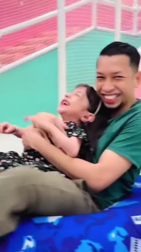 Salah satu faktor kenapa Maryam bisa tumbuh menjadi anak yang ceria meskipun dengan kondisi disabilitas adalah karena tangki cintanya selalu penuh. Terimakasih Ayah, you are my first love π#osteogenesisimperfecta#specialneedskids