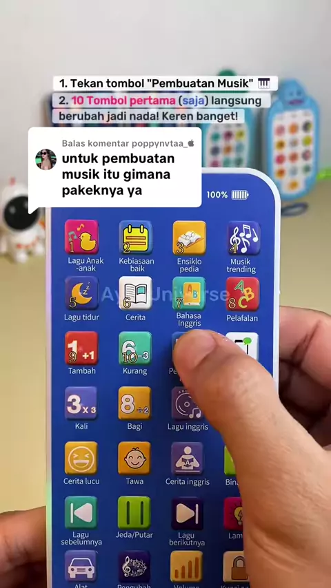 Membalas @poppynvtaa_ Saat menekan tombol “pembuatan musik”, 10 tombol pertama akan berubah otomatis jadi nada ya Kak. Tombol ke 12 dan seterusnya tidak menjadi nada, tetap seperti bawaannya. Untuk lebih jelasnya aku bikinin video ya 😊 #hpedukasi #mainanhp #handphonemainan #mainanedukasi #hpmainan