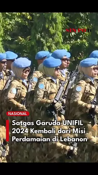 Sebanyak 1.087 prajurit TNI dari Satgas Kontingen Garuda yang bertugas dalam misi perdamaian PBB di Lebanon Selatan resmi disematkan sebagai pahlawan perdamaian setelah menyelesaikan tugasnya selama satu tahun. Kapuspen TNI, Brigjen TNI Kristomei Sianturi, menyatakan bahwa penyambutan Satgas Kontingen Garuda UNIFIL merupakan bentuk penghargaan langsung dari Panglima TNI atas dedikasi dan keberhasilan prajurit menjaga perdamaian di kancah internasional. #TNI #UNIFIL #PBB #satgas #misiperdamaian