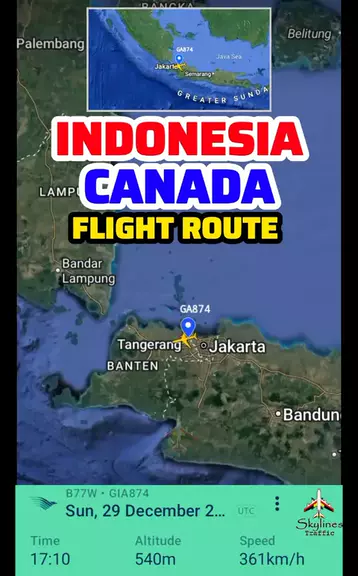 Indonesia - Canada Jakarta to Toronto Flight Route, 29-12-2024 First Flight : Jakarta to Tokyo Airport : Soekarno Hatta Intl Airport to Tokyo Intl Airport Distance : 5950 Km Flight Duration : 6h 40m Airline : Garuda Indonesia Flight Number : GA874 Aircraft Type : Boeing 777-3U3 Passenger Capacity : 314 Seats Flight Frequency : Every Day Second Flight : Tokyo to Toronto