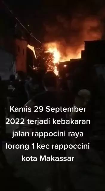 Kamis 29 September 2022 terjadi kebakaran jalan rappocini raya lorong 1 kec rappoccini kota Makassar