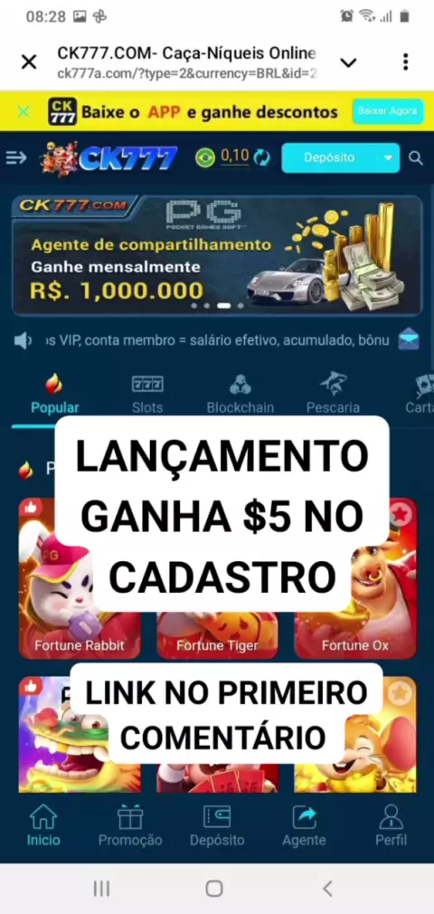 🛑LANÇAMENTO GANHA $5 NO CADASTRO 🛑 https://www.ck777a.com/?id=73421656¤cy=BRL&type=2 🛑DEPÓSITO MÍNIMO $10 🛑SAQUE MÍNIMO $10