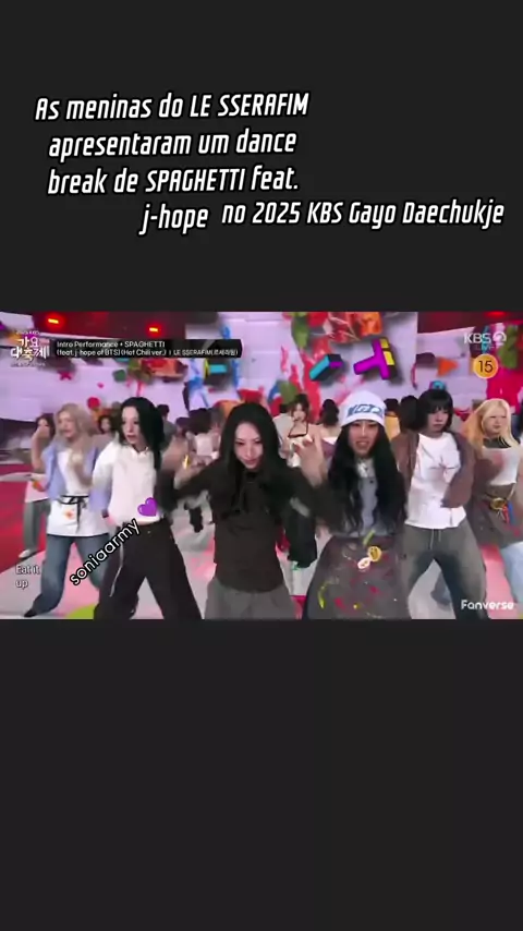 As meninas do LE SSERAFIM apresentaram um dance break de SPAGHETTI feat. j-hope durante o 2025 KBS Gayo Daechukje ao vivo. Vale a pena conferir: #jhope #EAT_IT_UP_SPAGHETTI #LESSERAFIM #cresenafamilia #armybts