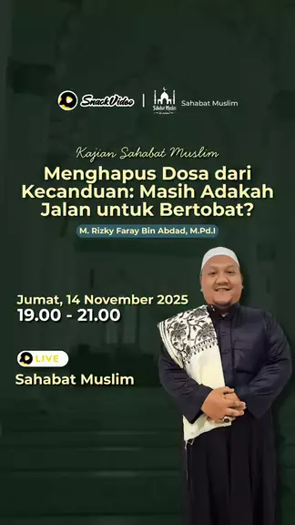 Dosa besar bukan berarti tak ada harapan😔 Banyak yang terjerumus dalam kecanduan, namun pintu taubat Allah tak pernah tertutup bagi siapa pun yang ingin kembali🌙 Yuk bahas bersama: 📅 Jumat, 14 November 2025 | 19.00 WIB 🎙️ Bersama: Ustadz M. Rizky Faray Bin Abdad, M.Pd.I 🎁 Hadiah spesial untuk hari ini: Emas 0.25 gram!⭐️ #SahabatMuslim #BelajarBareng #Religi