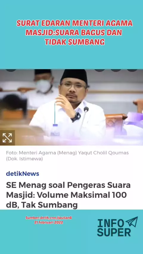 Menteri Agama (Menag) Yaqut Cholil Qoumas menerbitkan surat edaran (SE) Nomor 05 tahun 2022 yang mengatur tentang penggunaan pengeras suara di masjid dan musala. #berita #News #masjid #kemenag