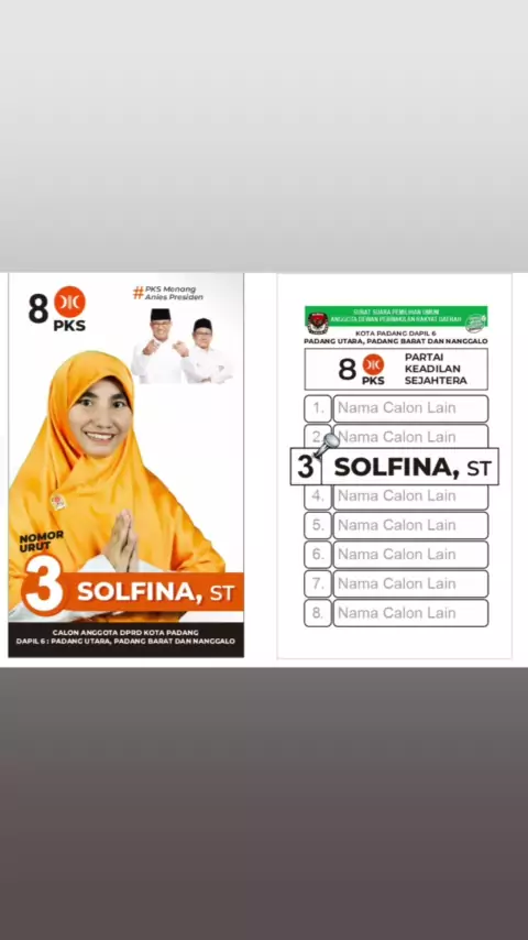yuk pilih caleg PKS. nomor 3 SOLFINA. ST Untuk DPRD Padang 6 Nanggalo. Padang Barat dan Padang Utara #PilihPKS #calegperempuan