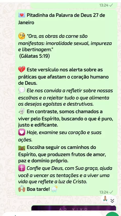 💌 *Pitadinha da Palavra de Deus 27 de Janeiro* 🧐 _"Ora, as obras da carne são manifestas: imoralidade sexual, impureza e libertinagem."_ *(Gálatas 5:19)* #palavra #pitadinha #devocional #status #DEUS