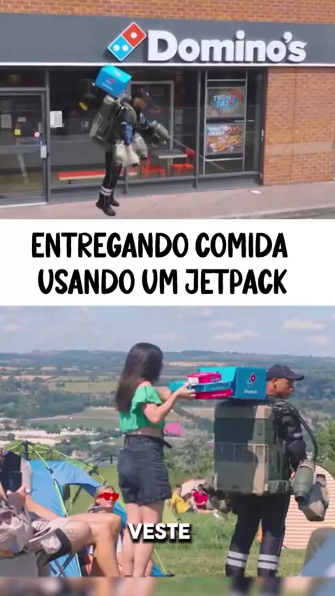 Entregando comida para viagem enquanto usa um jetpack. #trending #Conhecimento #fyp #jetpack