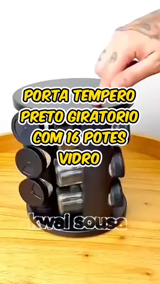 Porta Tempero Preto Giratorio Com 16 Potes Vidro #ArrochaChristinaNoKwai #viraliza #DançaDaFoguenta