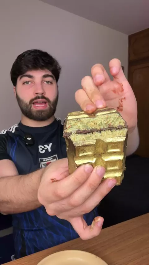 provando a barra de pistache de dubai que tá todo mundo falando 🤨