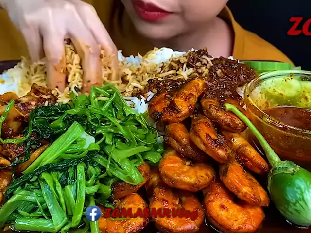 mukbang spicy shrimp, spicy squid, stir fried water spinach (Yt: ZCM ASMR) #asmrfood #asmrmukbang #mukbangasmr #bikinngiler #asmr #mukbang #mukbangvideo #videomukbang