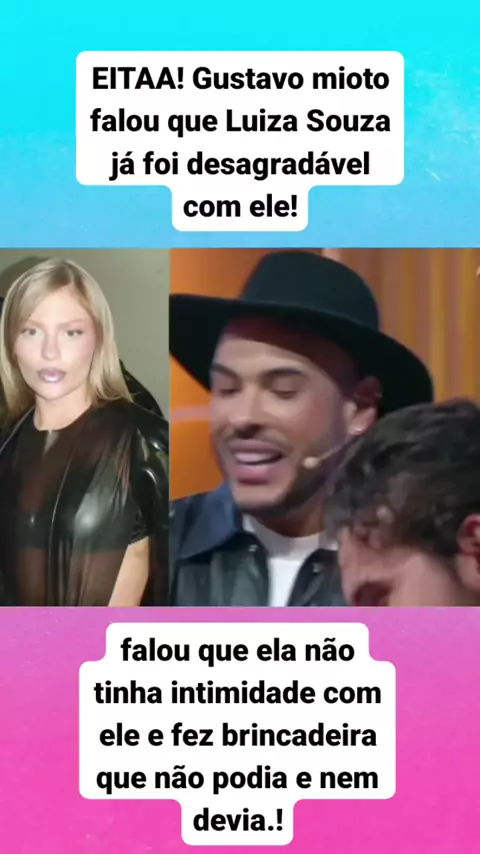 EITAA! Gustavo mioto falou que Luiza Souza já foi desagradável com ele!falou que ela não tinha intimidade com ele e fez brincadeira que não podia e nem devia.! #foficadosfamosos #mundodosfamosos #celebridades #luizasouza #Gustavomioto