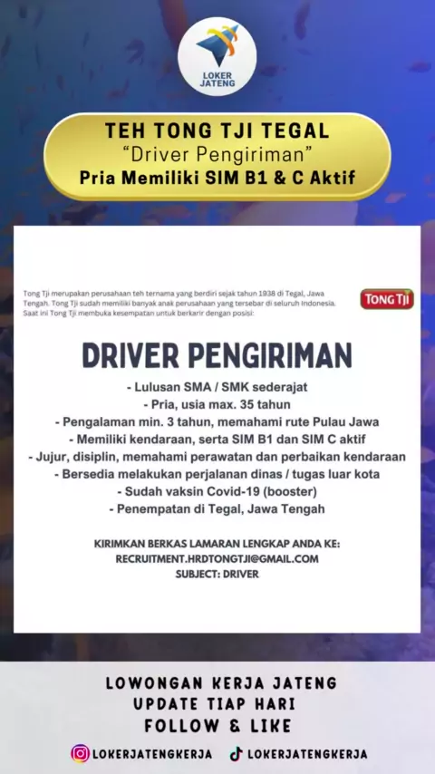 Lowongan Kerja Jawa Tengah Terbaru Posisi: Driver Pengiriman Lokasi: Tegal#lokerdriver#lokersopir#lokersupir#lokerpengiriman#lokertegal#lokertegalterbaru#lokertegal2023#carikerja2023#lokerjateng#lokerjateng2023#lokerjawatengah#lowongankerja2023#lowongankerjajawatengah#lowongankerja#infoloker#infoloker2023#infolokerjateng#loker2023#lokersmasmk#lokersma#lokersmk#lokersmaterbaru#lokers1#lokerdiploma