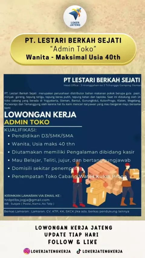 Lowongan Kerja Jawa Tengah Terbaru Posisi: Admin Toko Lokasi: Kulon Progo, Jogja#lokeradmin#lokeradministrasi#lokerstaffadmin#lokeradmintoko#lokerstaff#carikerja2023#lokerjogja#lokerjogjaterbaru#lokerjogja2023#lokerjateng#lokerjateng2023#lokerjawatengah#lowongankerja2023#lowongankerjajawatengah#lowongankerja#infoloker#infoloker2023#infolokerjateng#loker2023#lokersmasmk#lokersma#lokersmk#lokersmaterbaru#lokers1#lokerdiploma
