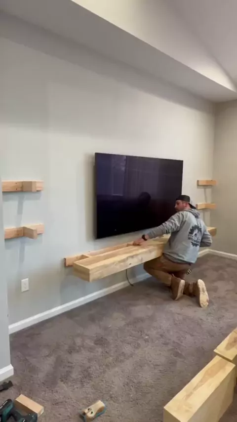 Floating shelved and a massive mantle. A BIG ASH mantle. ๐#woodworking#woodwork#howto#DIY#SmallBusiness#shelves#floatingshelves