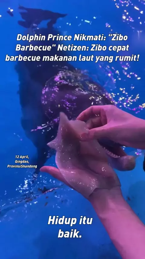 Pada tanggal 12 April, di Qingdao, Provinsi Shandong, barbekyu Zibo meledak ke akuarium! Pangeran lumba-lumba makan teh sore "Zibo Barbecue". Netizens: Biarkan Zibo tricky seafood barbeque!