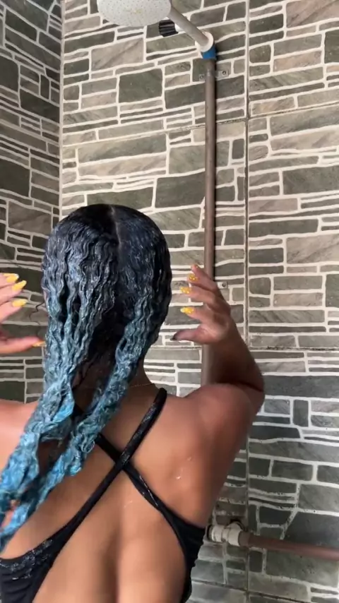 rotina capilar retocando o cabelo azul..