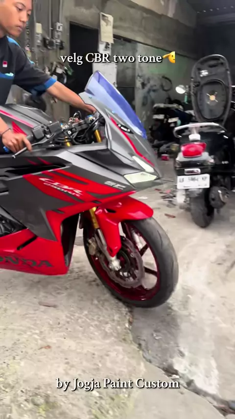 Konsep unik ini, velg cbr two tone, depan merah candy, belakangnya biru candy🫡🤣 WA: 08985122956 // Babarsari, Sleman#velgcbr#repaintvelgjogja#catvelgjogja#redcandy#bluecandy