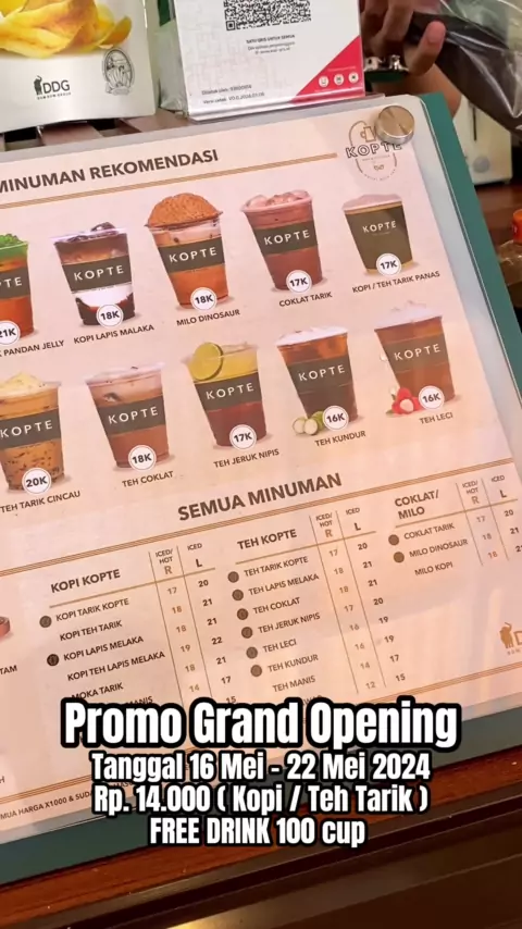 Minuman Kopi Dan Teh Tarik No 1 Singapura akhirnya buka di Kuningan Loh ges, dengan lokasi yang hidden gem tempat yang adem sejuk dikarenakan di kelilingi tanaman hijau ini tu jadi tempat pilihan untuk bersantai sembari menikmati kopi dan teh tarik nya KOPTE ini. Sudah Tersedia Di Go Food dan Grab Food . KOPTE TARIK KUNINGAN EYE CENTER by Dum Dum Grup @kopte.id π Gazebo Kuningan Eye Center ( Di Area Parkir Eye Center Kuningan ) SUDAH ADA GOOGLE MAP . #koptetarik #tariksemangatmu #pejuangkopt