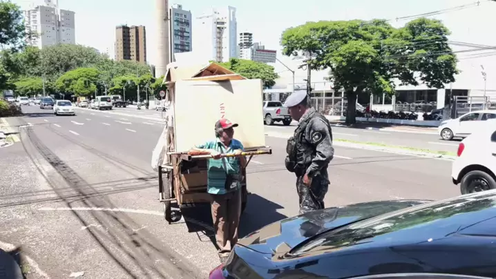 Policial aborda catador de papelão e surpreende ele com presente de R$100 nas ruas de Maringá! Subtenente Dioney aborda coleta de reciclado #subtenentedioney