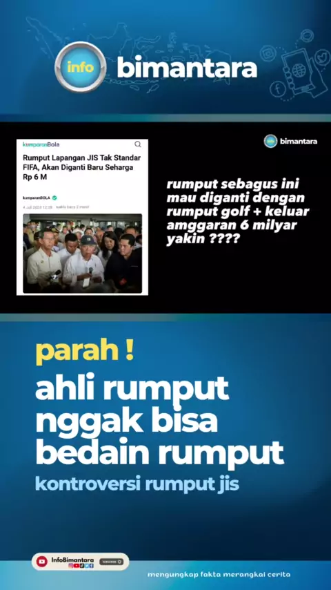 Keputusan menteri P U P R menganggarkan 6 milyar untuk mengganti rumput jis karena dianggap tidak layak menuai polemik. Banyak pengamat menilai, keputusan tersebut prematur, karena yang punya otoritas menilai standar dan tidaknya stadion sepak bola adalah assesor dari fifa bukan wilayah kementrian p u p r. Ahli rumput yang dibawa oleh menteri B U M N erik tohir pun tak lepas dari sorotan, apalagi disinyalir keterangan yang disampaikan tidak valid, salah satunya menganggap rumput jis tidak layak...