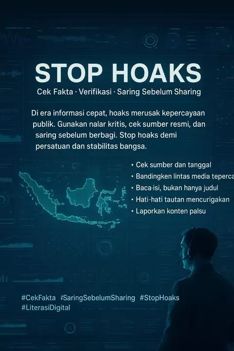 Di era digital kita dibanjiri informasi, maka jangan asal sebar, cek dulu kebenarannya dan bijaklah bermedia sosial mulai dari diri kita. #WaspadaKontenPalsu #StopRekayasaAI #GunakanFaktaBukanHoaks #DemokrasiSehatTanpaHoaks #JagaPersatuanBangsa