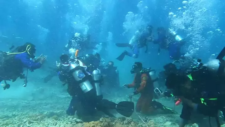 Detik-detik Pengibaran Bendera Bawah Laut, Kec. Sambelia LOTIM