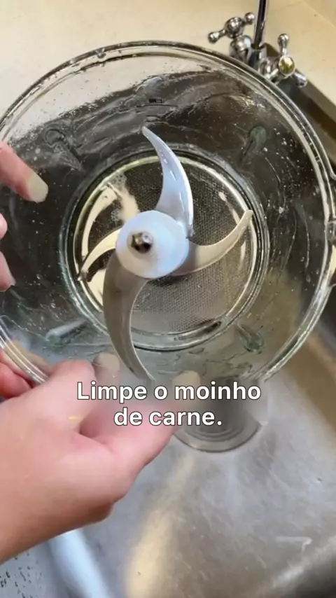 Ensine-o a limpar o moinho de carne.