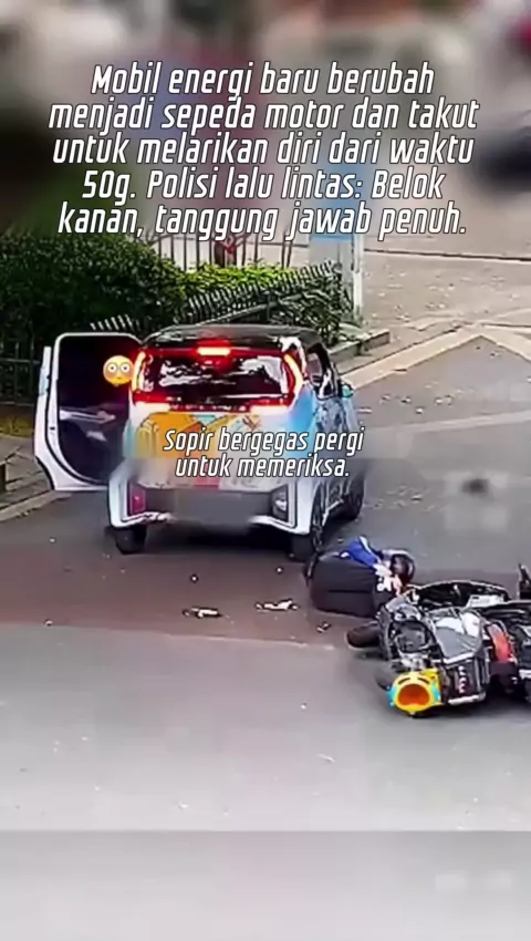 Mobil energi baru berbelok ke kanan dan menabrak sepeda motor.