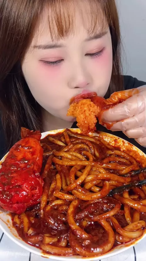 Mie goreng RMB Xinjiang dengan sayap ayam dan nasi akan datang.
