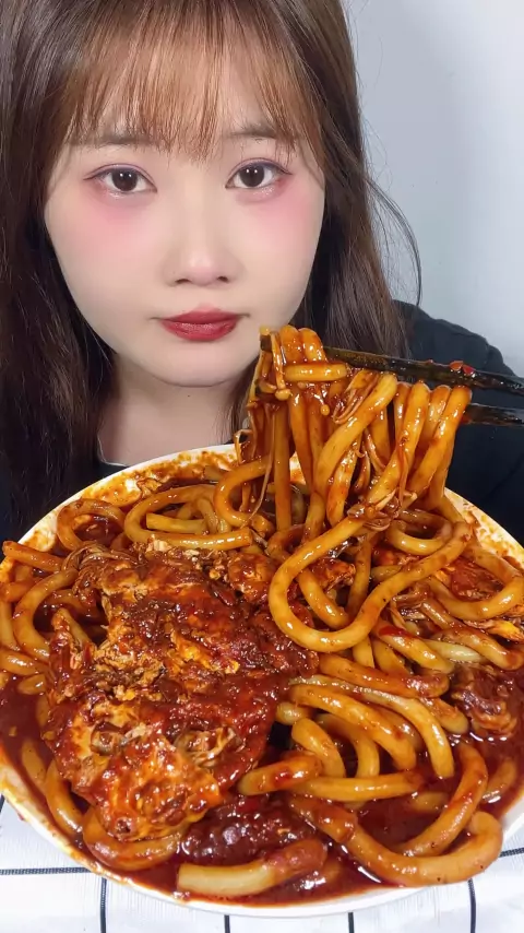 Mie goreng Xinjiang RMB pedas! Aku belum makan terlalu lama. Aku ingin mati. Saya ingin makan Xinjiang pedas goreng RMB penggemar.