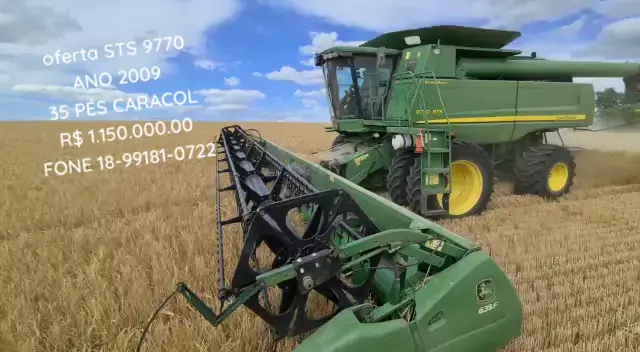 Colheitadeira JONH DEERE STS 9770 ANO 2009 35 P脡S CARACOL 4X2- SEM PILOTO R$ 1.150.000.00