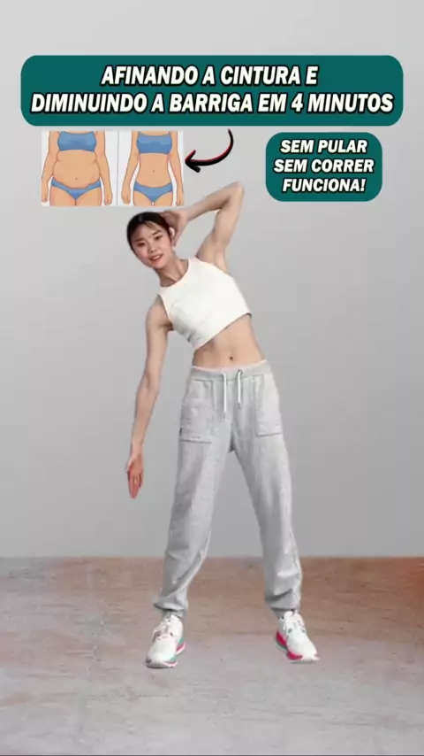 Sem pular e sem correr. 4 Minutos de exercícios. #afinarcintura #cinturafina #caminhada #perderbarriga #barrigagrande