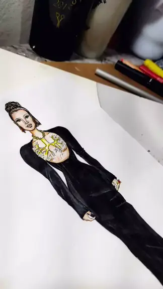 Detalhes da minha parte favorita desse desenho... ✨ #schiaparelli #bellahadid #drawing #draw #fashionIllustration
