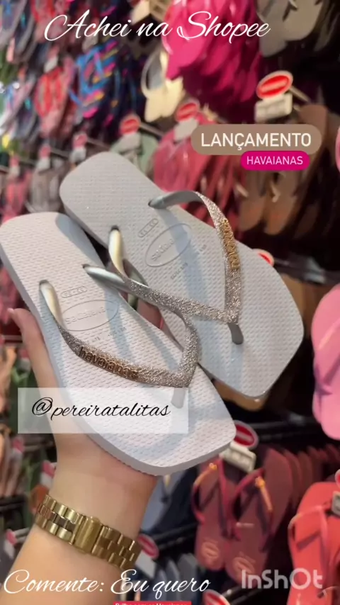 Procurando algo confortável para o seus Pés??🤔🤔 Use o Chinelo Feminino Havaianas Quadrado Glitter Confortável Promoção por R$18,00 - R$22,80. #havaiana #havaianas #chinelo #SHOPEE #Natal