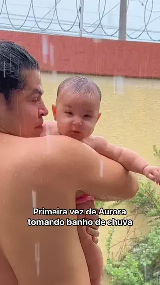 Primeira vez de Aurora tomando banho de chuva