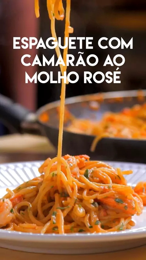Espaguete com camarões ao molho rosé! #espaguete #camarão #receita #shrimp #spaghetti