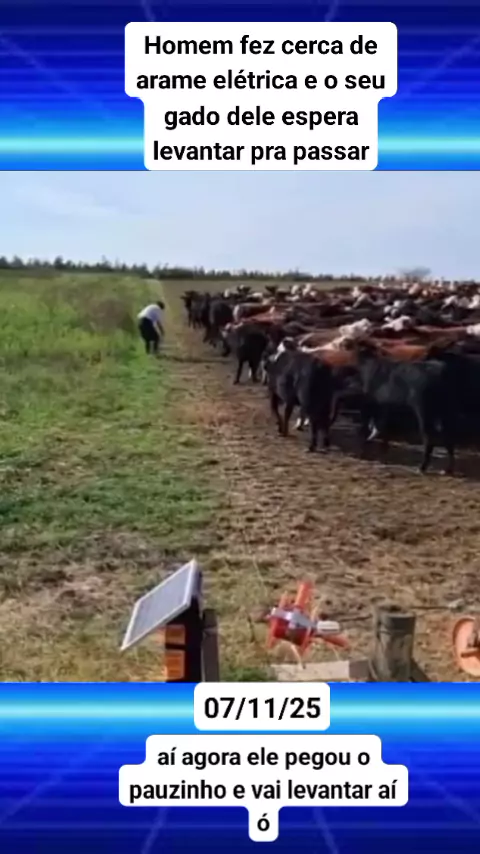 Homem fez cerca de arame elétrica e o seu gado dele espera levantar pra passar #notícias #noticiasviral