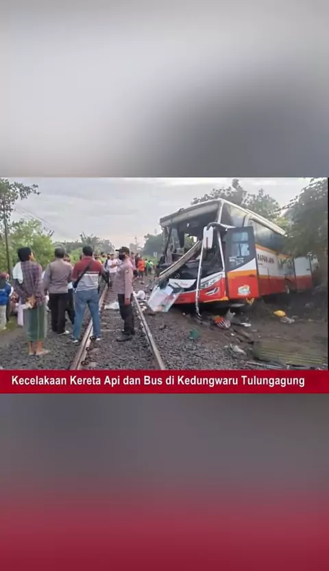 kecelakaan bus harapan jaya vs kereta api di Tulungagung #harapanjayaberduka