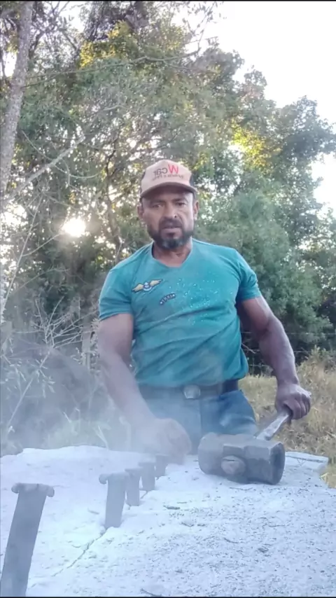 cortando pedra manual a moda antiga