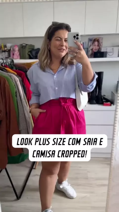 Look plus size com saia camisa cropped #fashion #moda #fy